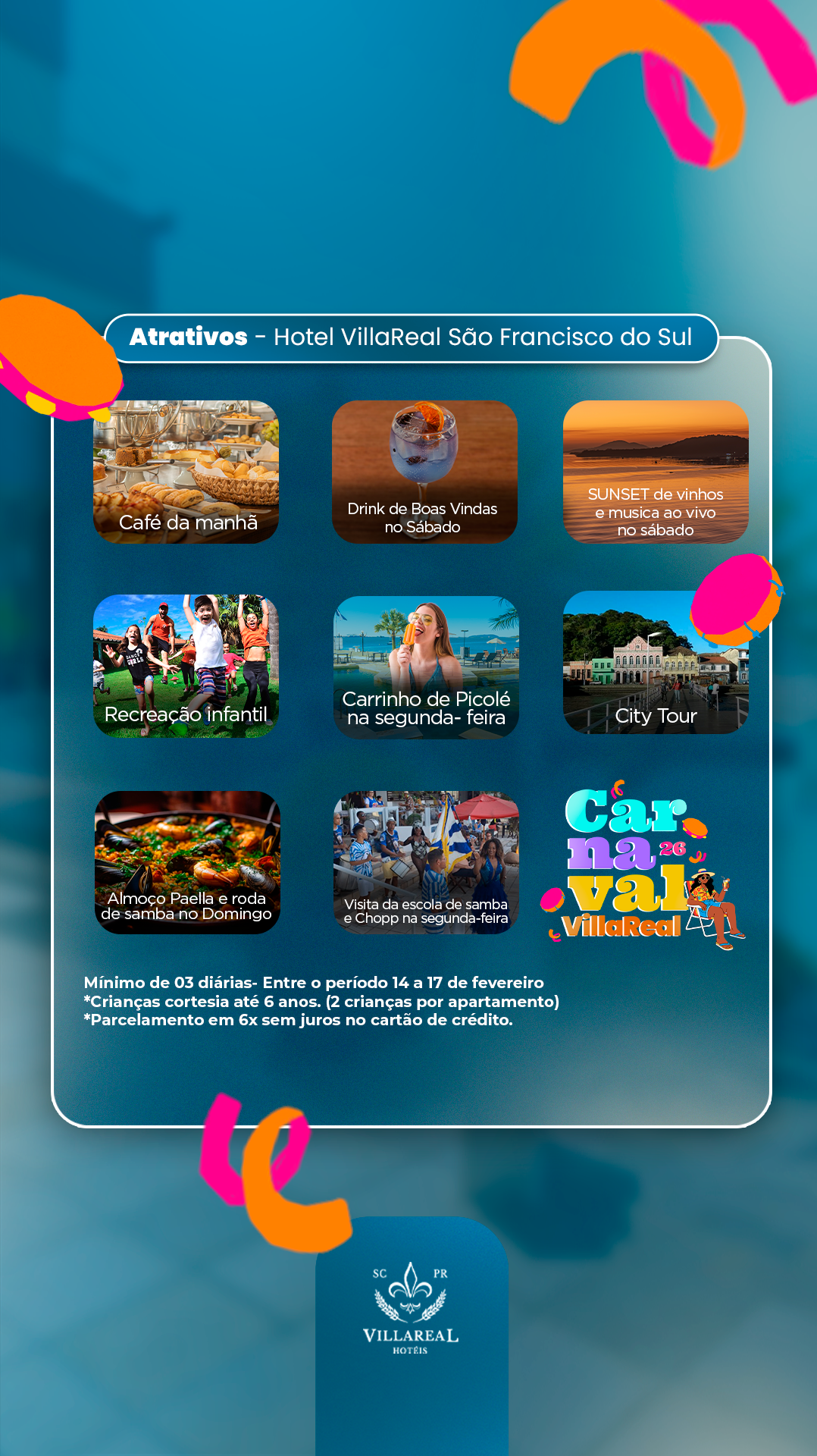 Parcele em até 6x sem juros, faça sua reserva e viva dias inesquecíveis no VillaReal!